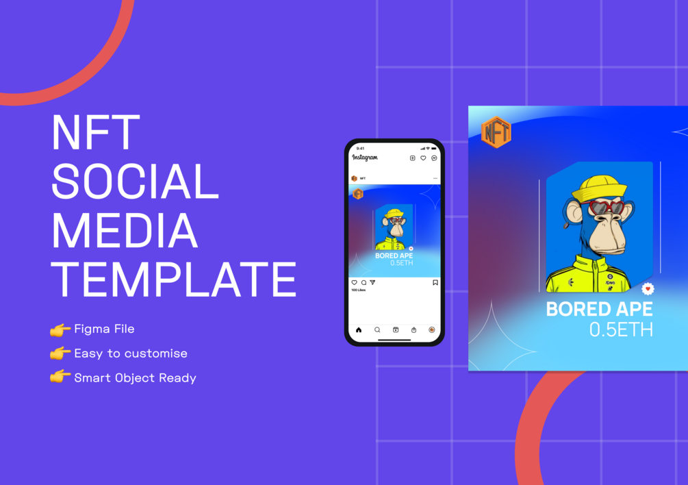 This Free NFT Social Media Template is designed natively for Instagram and includes files for different social media posts like Twitter. Each of them is easy to edit and customize.